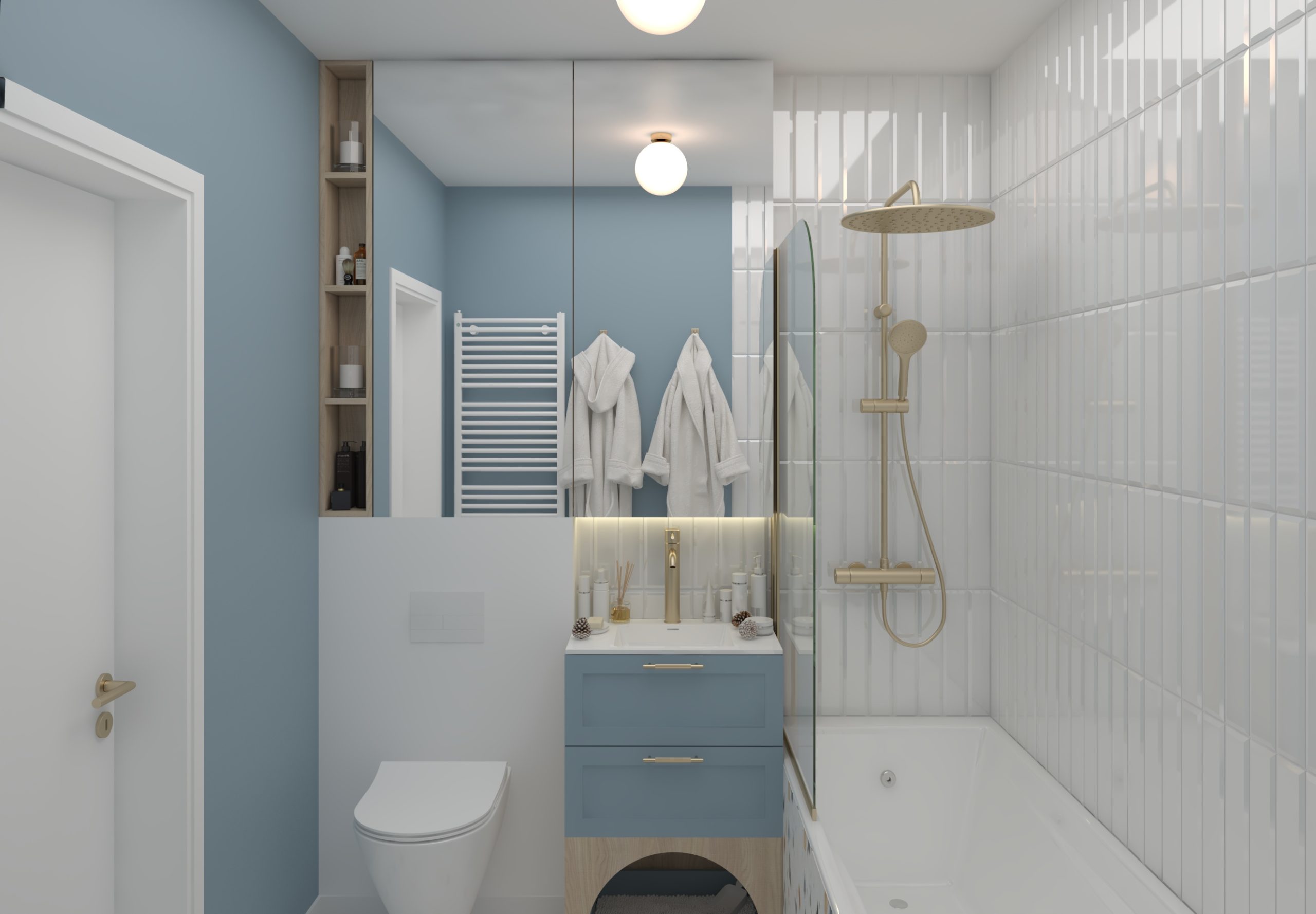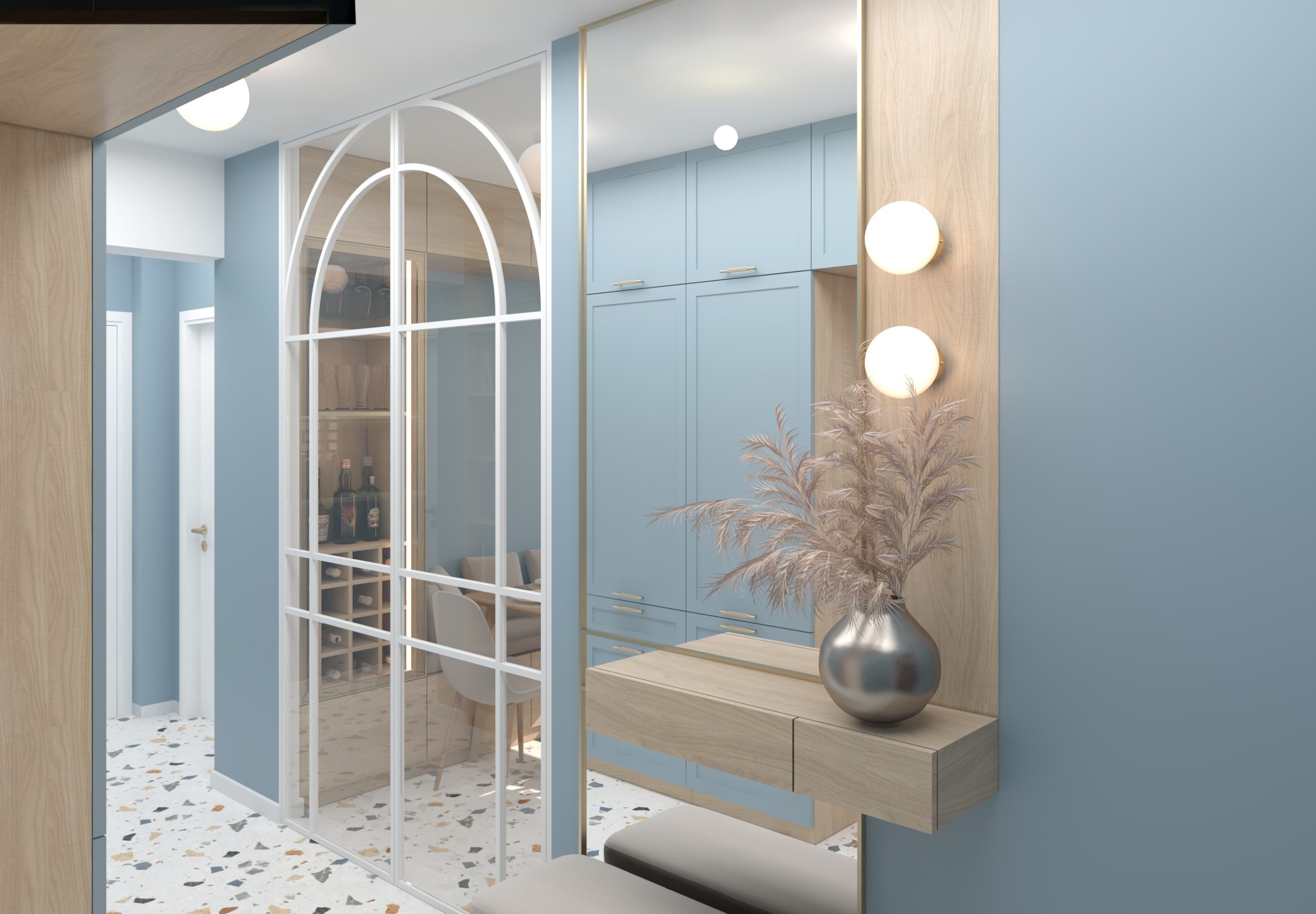 The apartment from Bucharest features a modern design with Art Deco influences, arranged over a total area of 70 m². The layout is planned to ensure clear circulation and efficient use of each area, using clean lines and geometric elements characteristic of the Art Deco style.